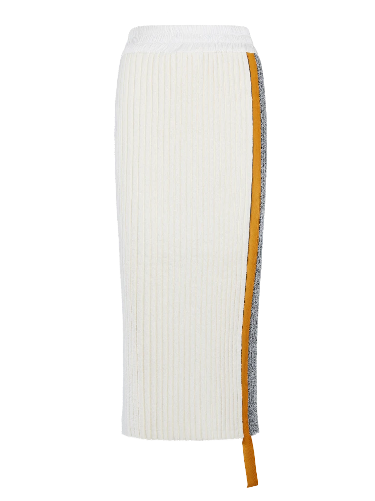 This tricot knit skirt for women by 2 Moncler 1952, collection n° 2 of the Moncler Genius project, highlights colour blocking, contrast colour details and sophisticated elements to think outside of the box and give a novel dose of fun to a womenswear staple.