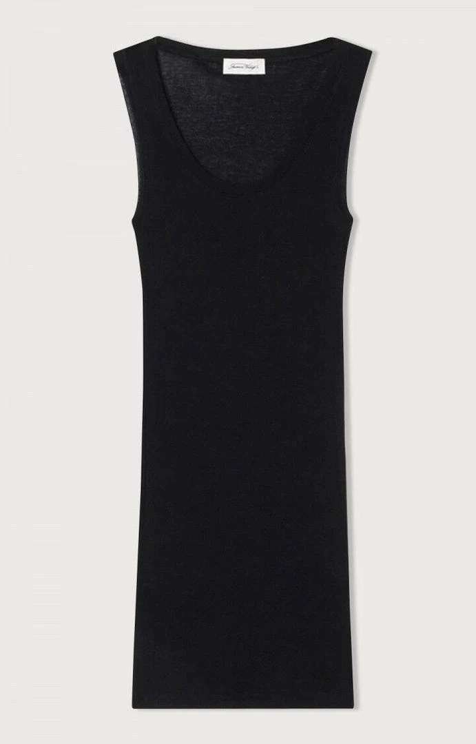 American Vintage black ‘Massachusetts’ vest featuring a round neck, a sleeveless style, a slightly sheer design and pulls on. Item fits true to size.Â