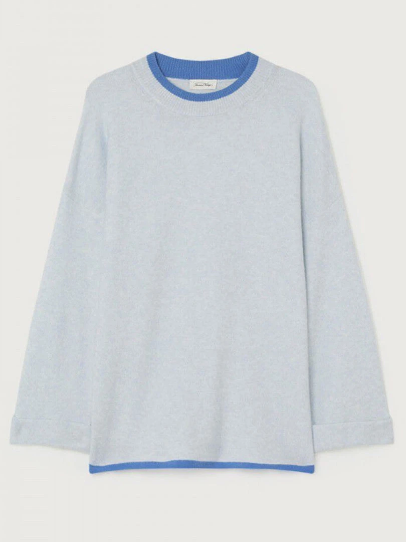 American Vintage blue oversized ‘Damsville’ tonal sweater featuring a high neckline, long sleeves with turned up cuffs, darker toned hem details and pulls on.