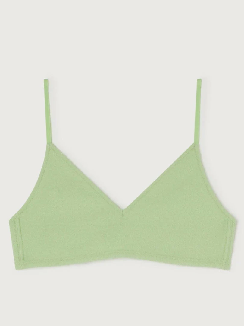 American Vintage green ‘Bobypark’ bralette featuring adjustable straps, a V-neckline, a back hook fastening and a textured fabric. Item fits true to size.