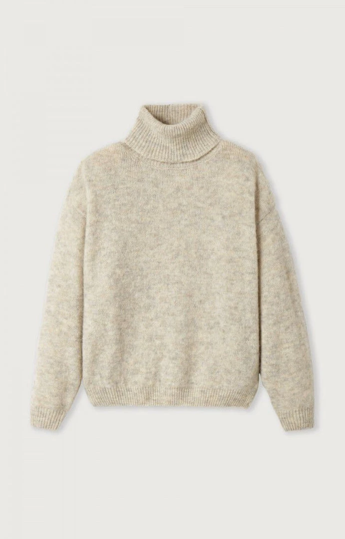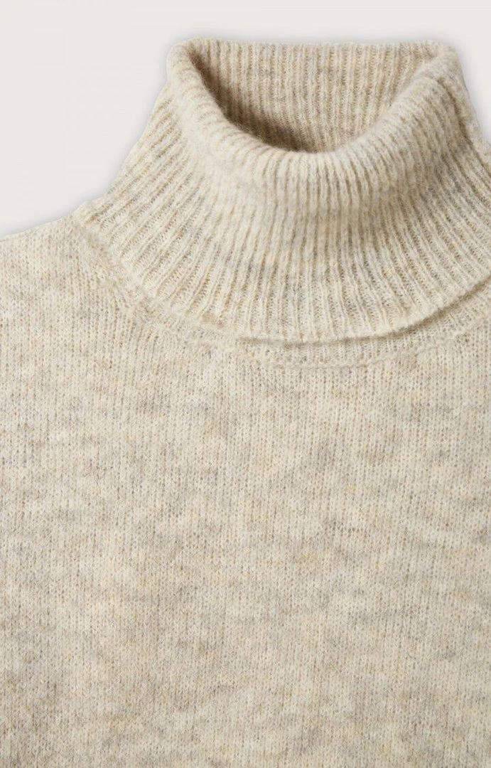 American Vintage light grey ‘East’ polo neck knit sweater featuring long sleeves, ribbed hems and a pull on style. Item fits true to size.Â
