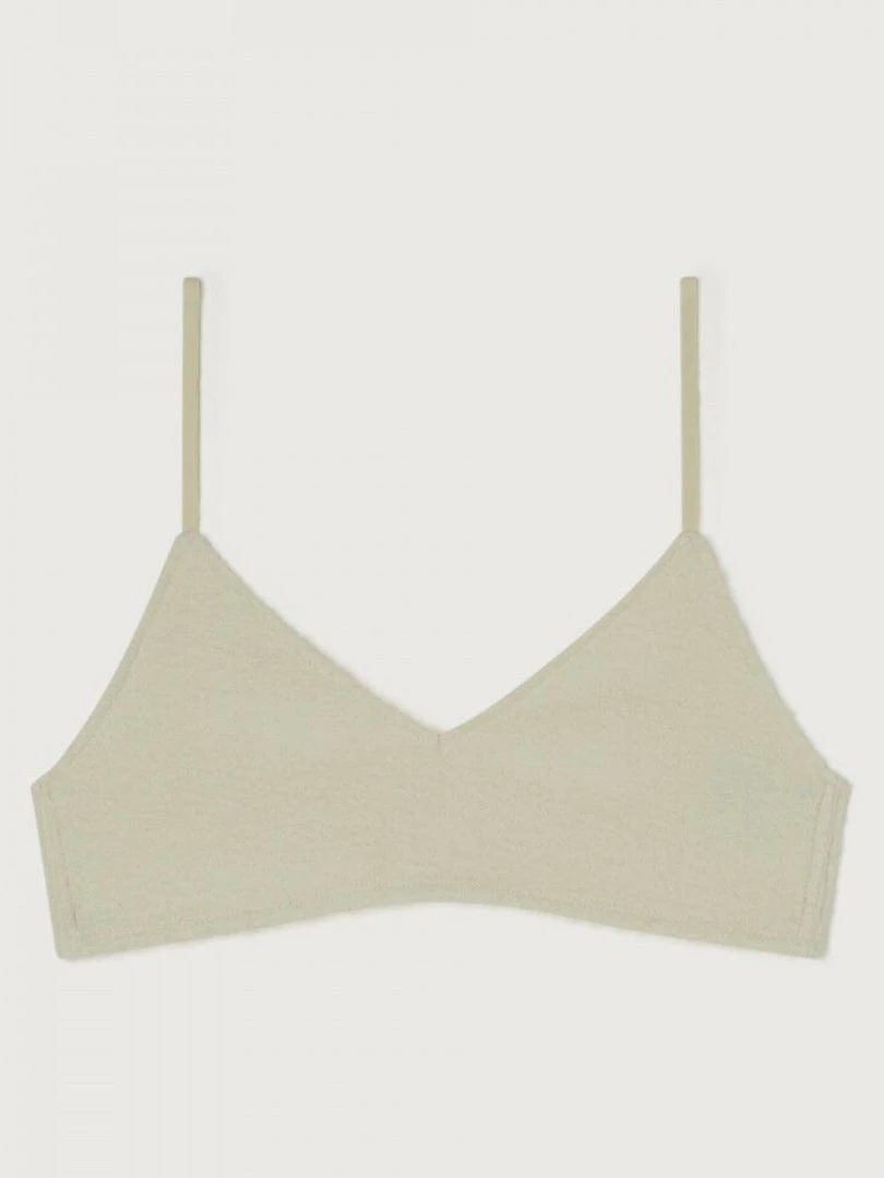 American Vintage ecru ‘Bobypark’ bralette featuring adjustable straps, a V-neckline, a back hook fastening and a textured fabric. Item fits true to size.