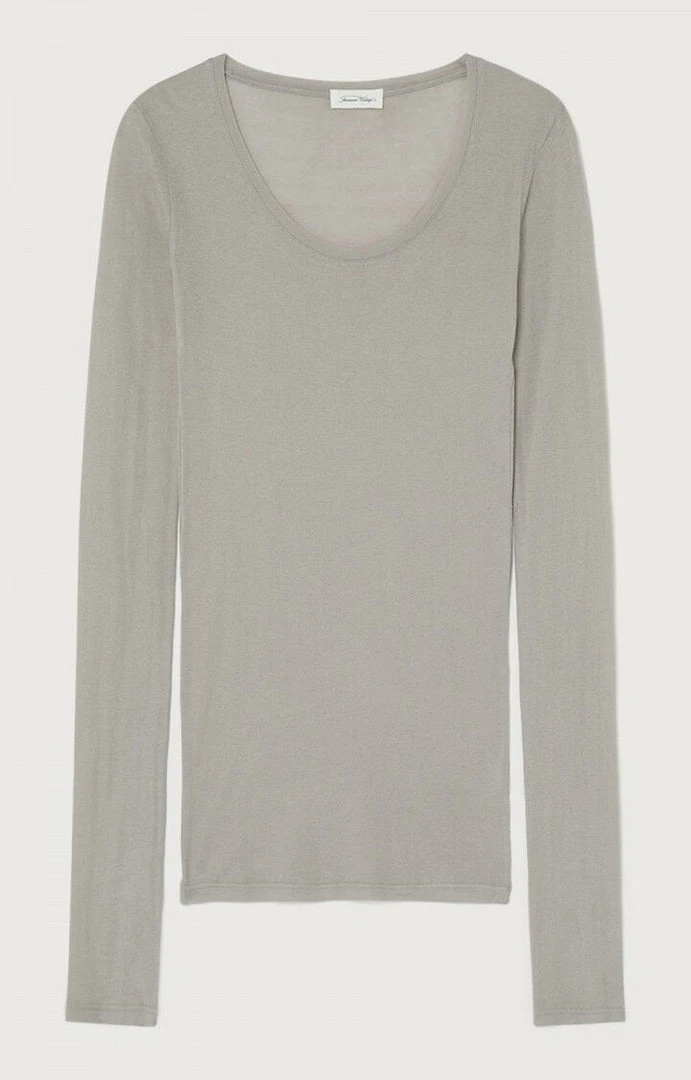 American Vintage grey ‘Massachusetts’ long sleeve top featuring a round neck, a slightly sheer design and pulls on. Item fits true to size.Â