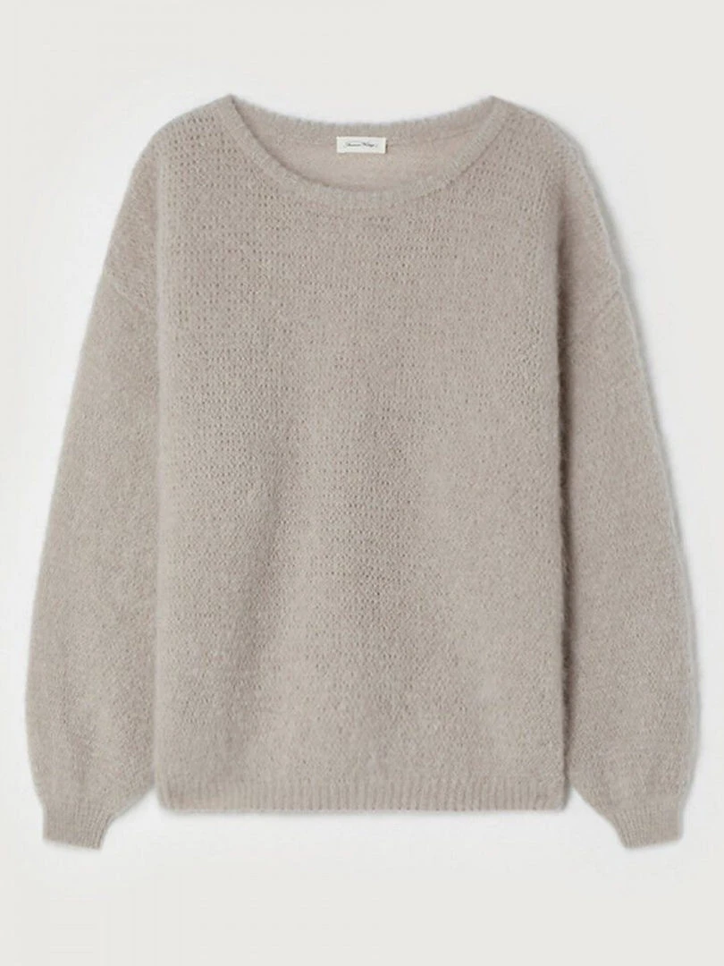 American Vintage taupe oversized ‘Pinobery’ mohair sweater featuring a crew neckline, long sleeves, ribbed hems and pulls on.