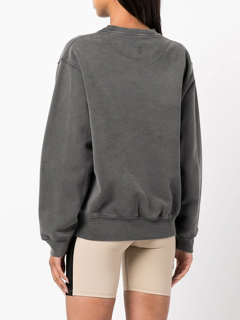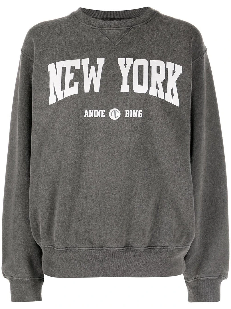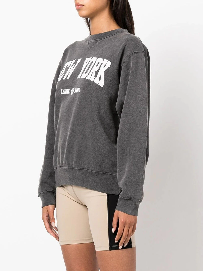 Anine Bing faded black ‘Ramona’ New York sweatshirt featuring a round neck, long sleeves, a back logo detail, ribbed hems and pulls on. Item fits true to size. Model is wearing a size XS.Â