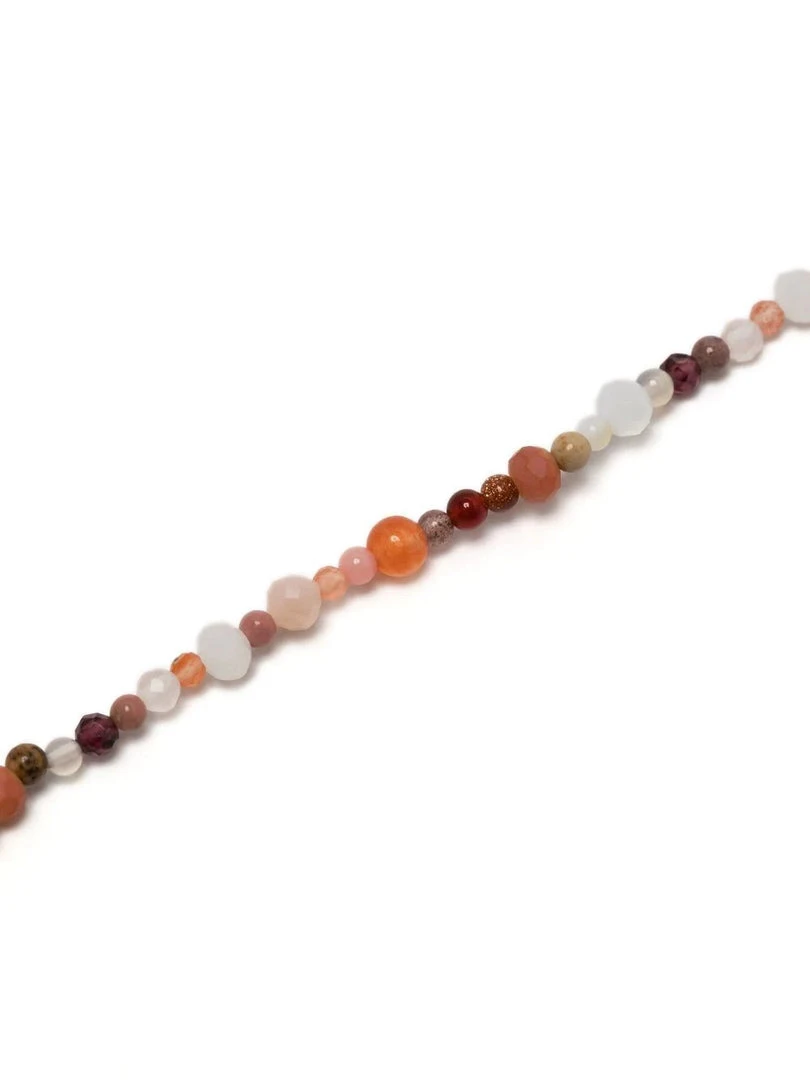 Anni Lu ‘Flamingo’ bracelet featuring an autumnal toned glass beaded design, gold tone hardware, an adjustable clasp fastening from 16 – 19.5cm and finished with a cultured freshwater pearl. Made in Denmark.