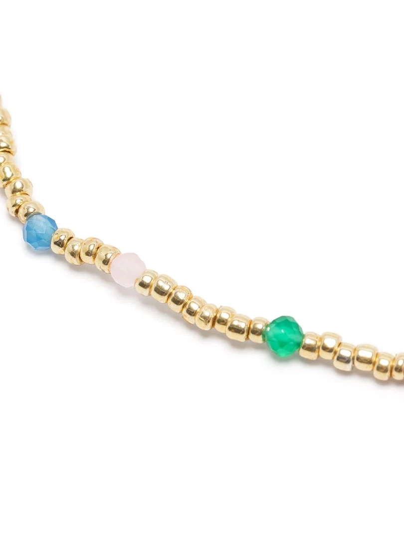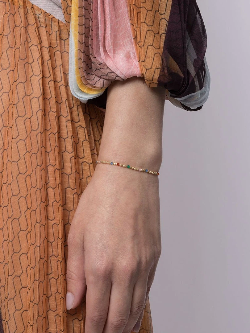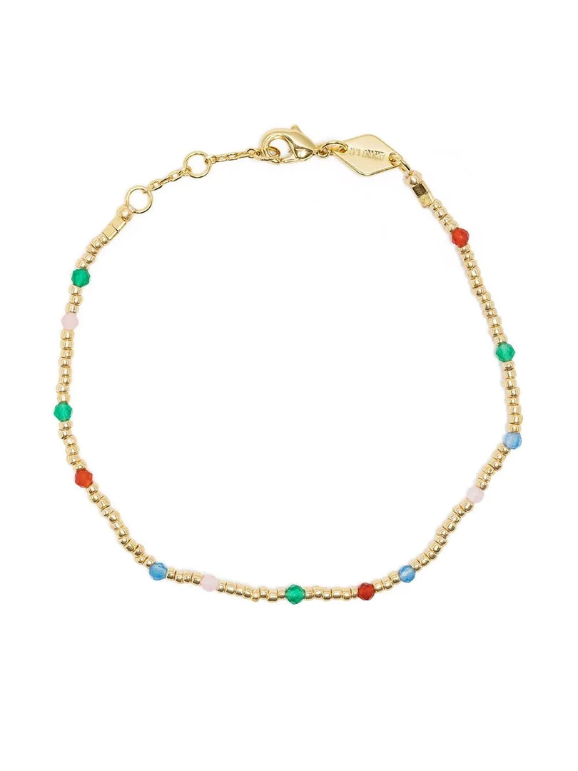 Anni Lu ‘Juvel’ bracelet featuring gold seed beads, multicoloured semi-precious gemstones, gold tone hardware and an adjustable clasp fastening. Length is 15.5-18cm. Made in Denmark.