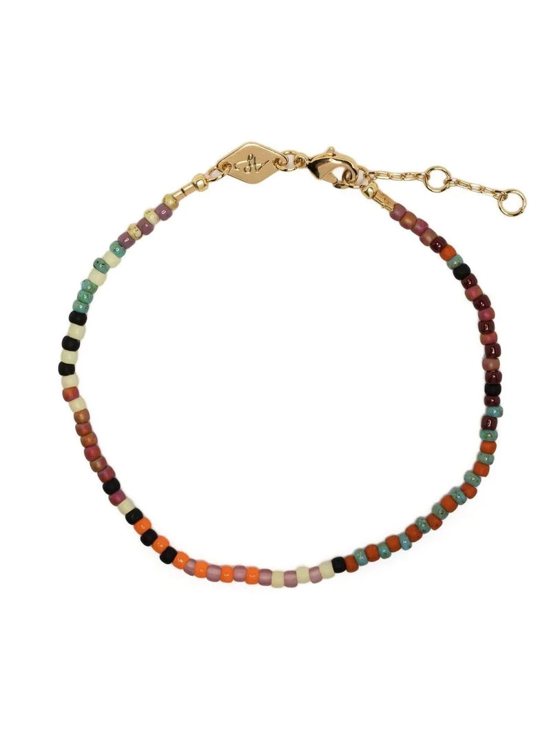 Anni Lu ‘Maya Beach’ bracelet featuring multicoloured glass beads, gold tone hardware and an adjustable lobster clasp fastening from 16 – 18.5cm. Made in Denmark.