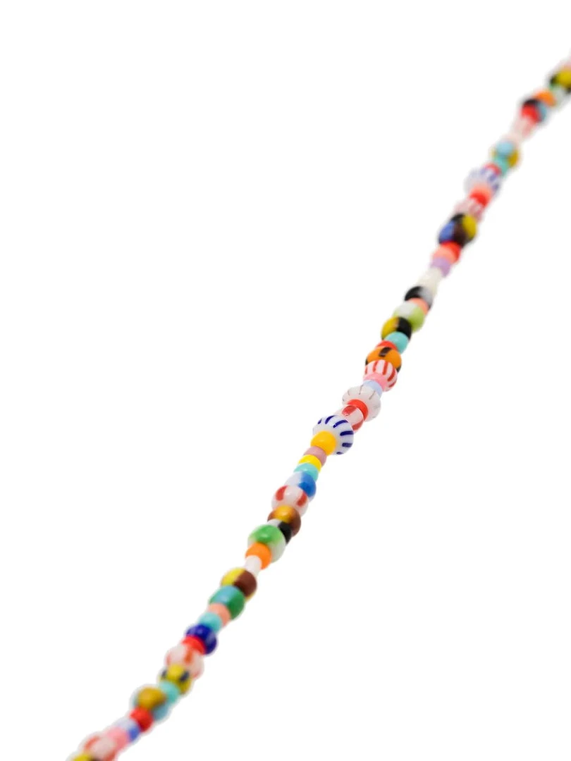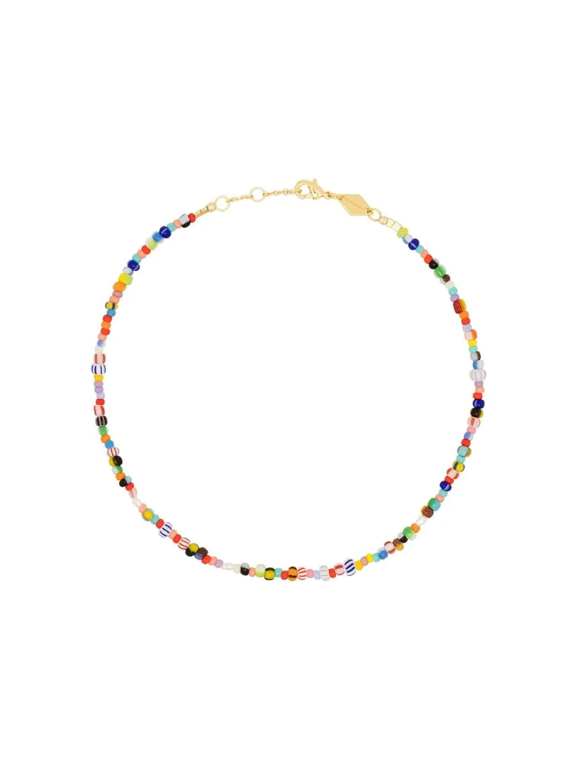 Anni Lu ‘Petit Alaia’ anklet featuring a multicoloured glass bead design, gold tone hardware and an adjustable lobster clasp fastening. Made in Denmark.