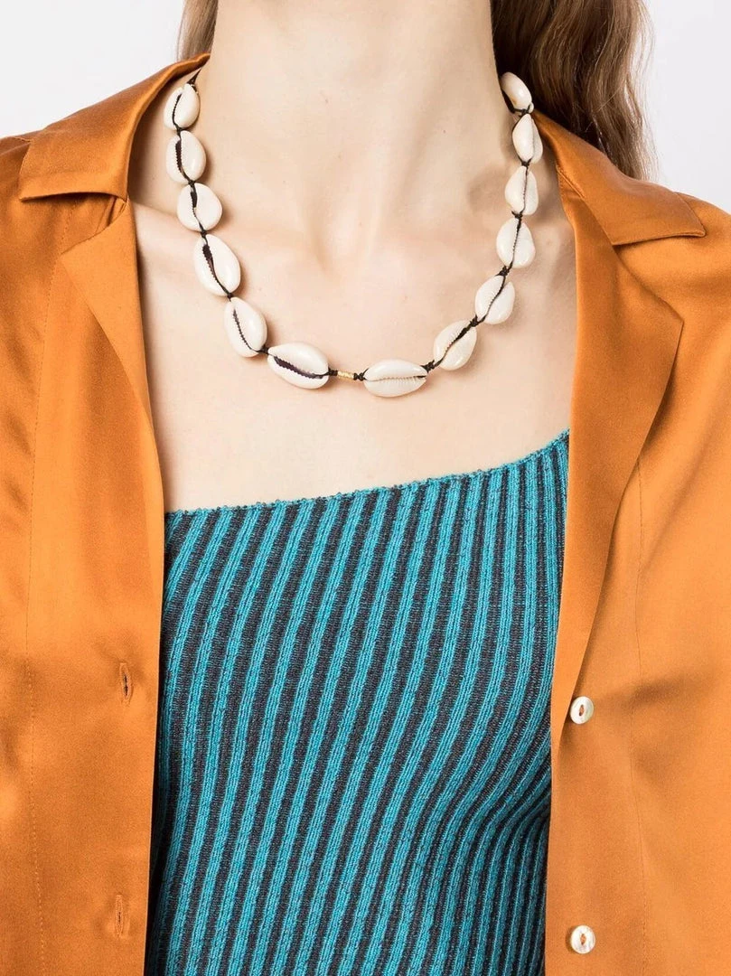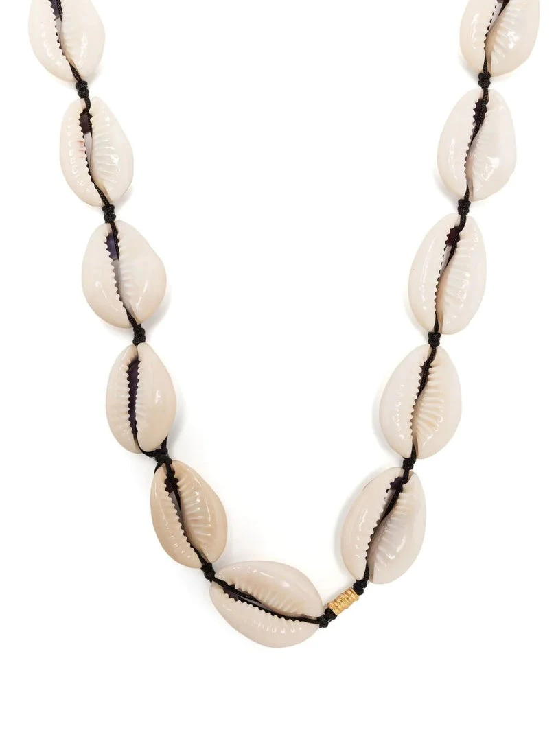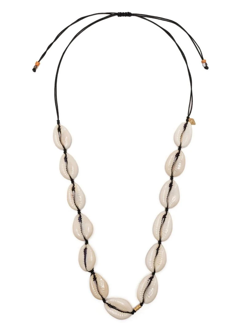 Anni Lu ‘Shelly’ necklace featuring Glass Beads and Cowry Shells on nylon and an adjustable pull fastening from 35 – 57cm. Made in Denmark.