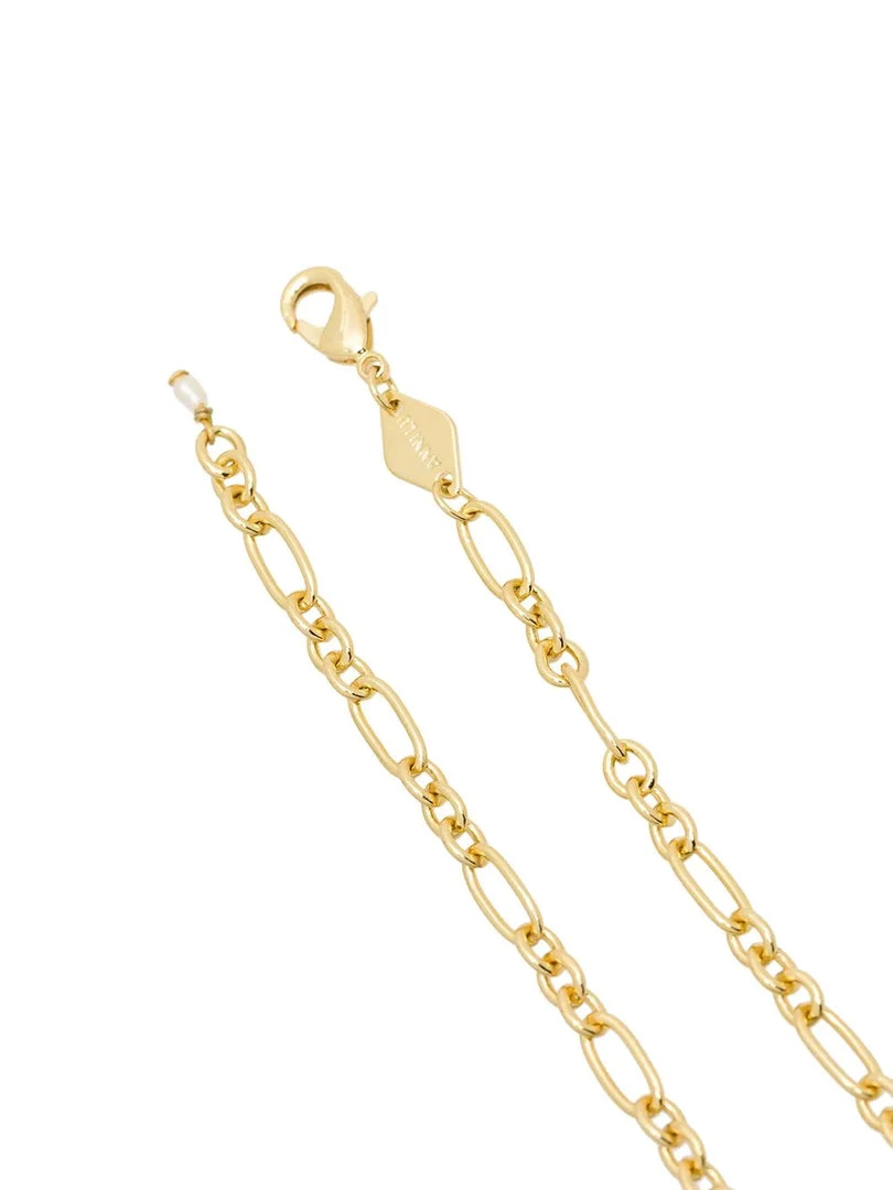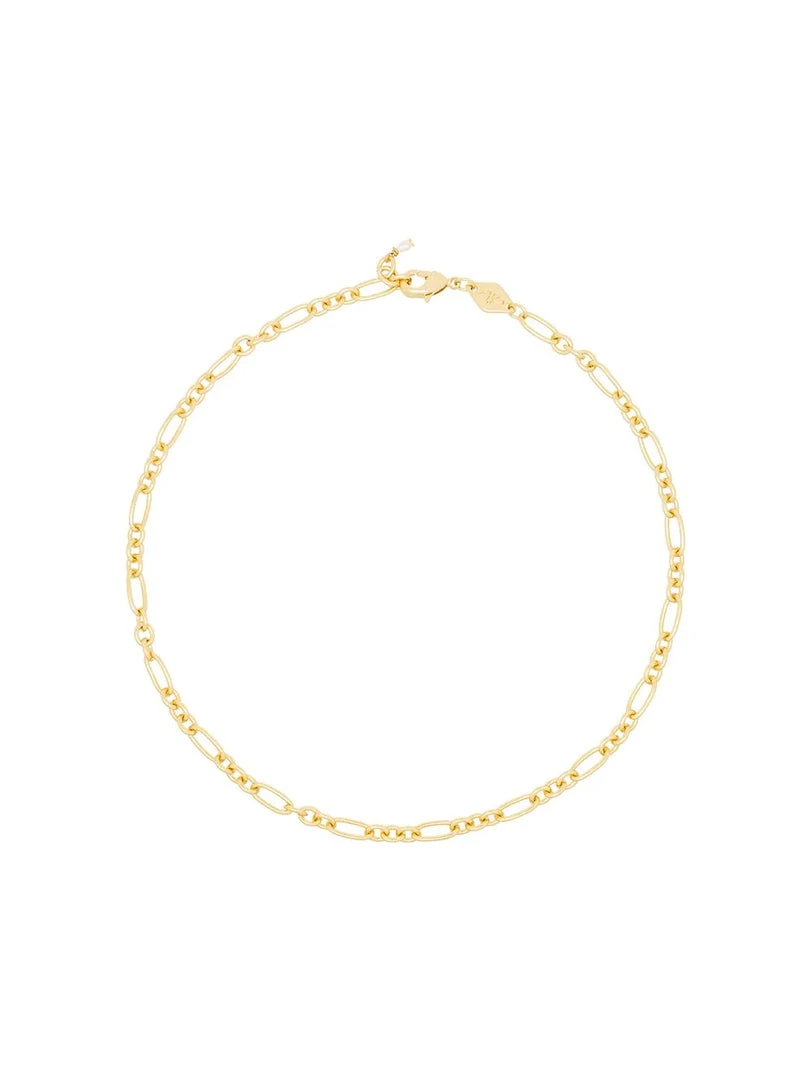 Anni Lu gold ‘Lynx’ anklet featuring a thin chain and a lobster clasp fastening with a cultured freshwater rice pearl. Made in Denmark.