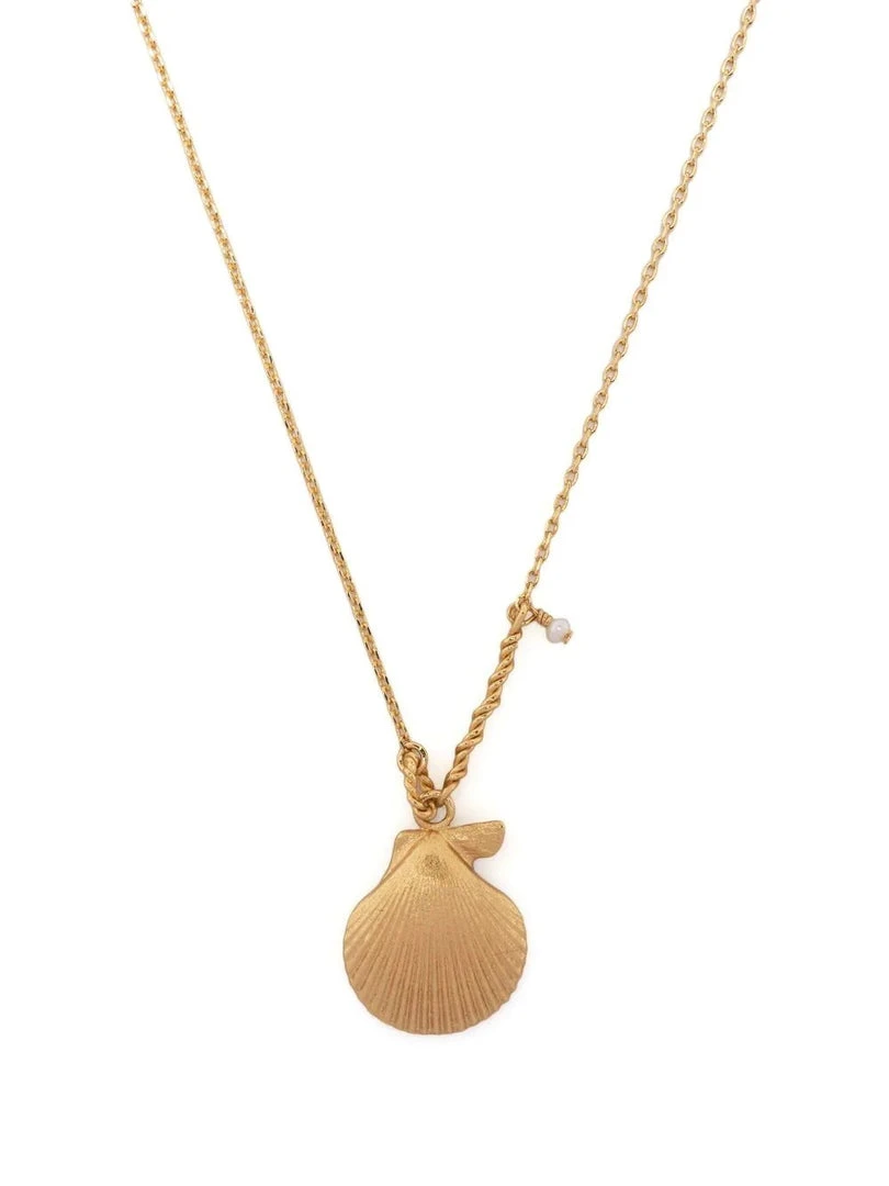 Anni Lu ‘Ray Shell Necklace’ featuring a thin chain, a shell pendant, an adjustable length of 47cm – 50cm, a lobster clasp fastening and cultured freshwater pearl cabochon details. Made in Denmark.