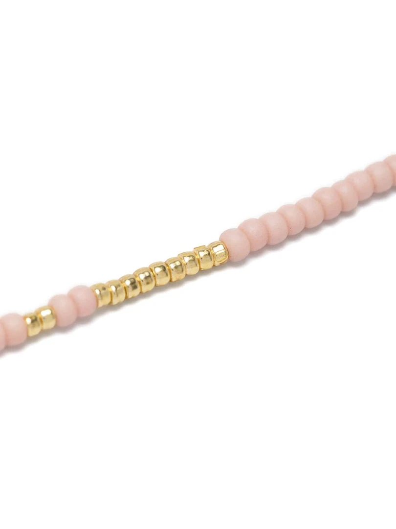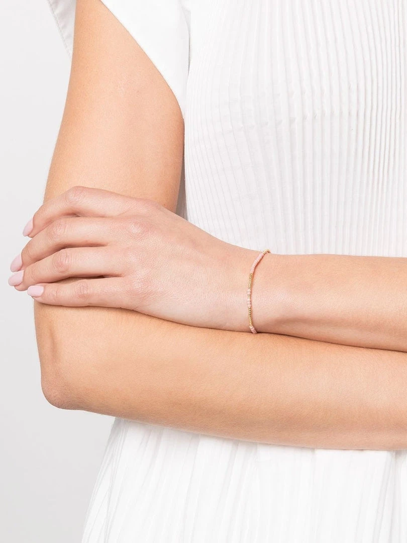 Anni Lu ‘Asym 22’ beaded bracelet featuring a gold and soft rose coloured bead design and an adjustable clasp closure. Length is 15.5cm to 18cm. Made in Denmark.