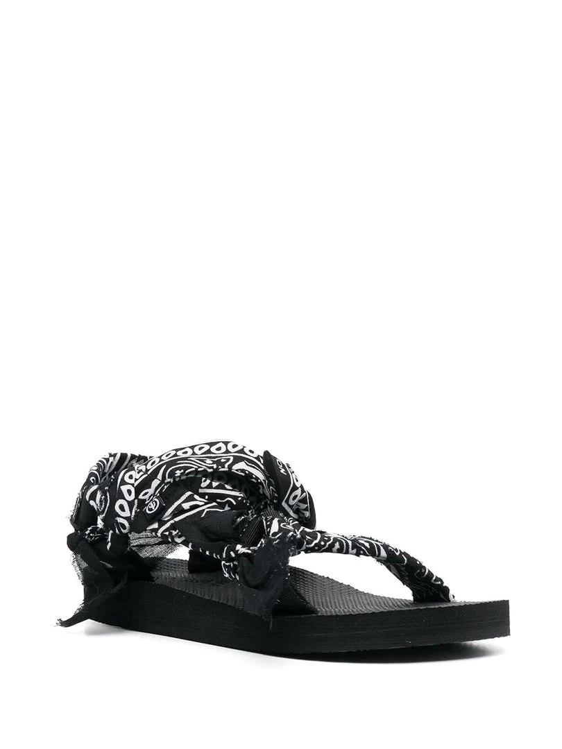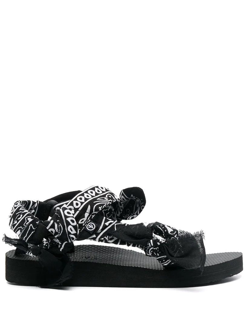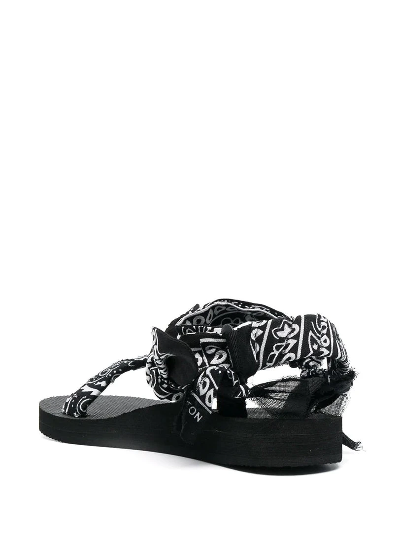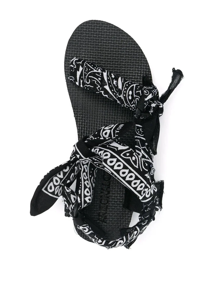 Arizona Love ‘Trekky Chou’ bandana sandals featuring an open toe, a strapped design, a wrap tie ankle fastening, frayed bandana details and a flat rubber sole. Item is a small size, we recommend to go a size up. Italian Sizing. Made in France.