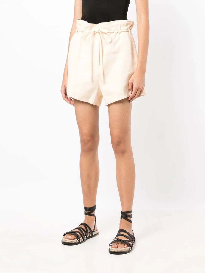 Ba&sh ecru ‘Joa’ shorts featuring a front button and zip fastening, a drawstring waist with a tie up detail, belt loops, side slip pockets and a high waist fit. Item fits true to size. Model is wearing a size 1.