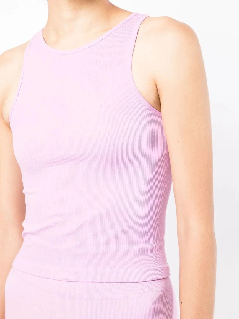 Baum Und Pferdgarten lilac ‘Jamara’ ribbed vest featuring a round neck, a sleeveless design and pulls on. Item fits true to size. Model is wearing a size XS.Â