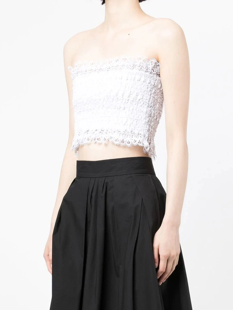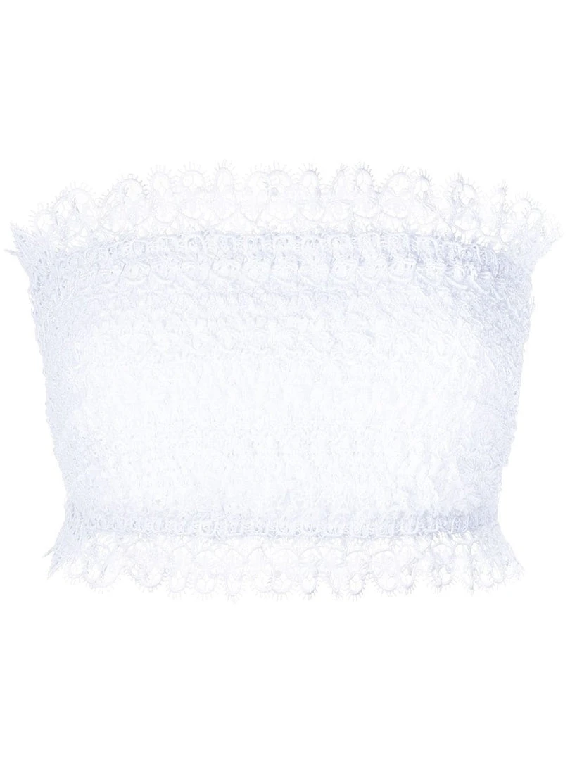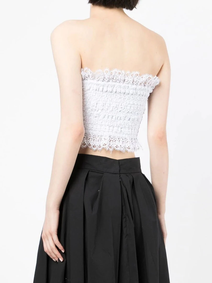 Charo Ruiz Ibiza white ‘Wallis’ bandeau top featuring a laced design, a cropped fit and a pull on style. Item fits true to size. Model is wearing a size S.Â