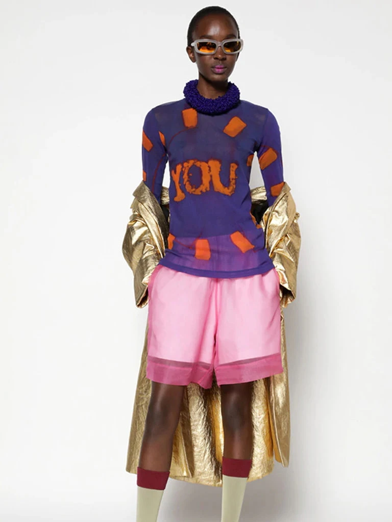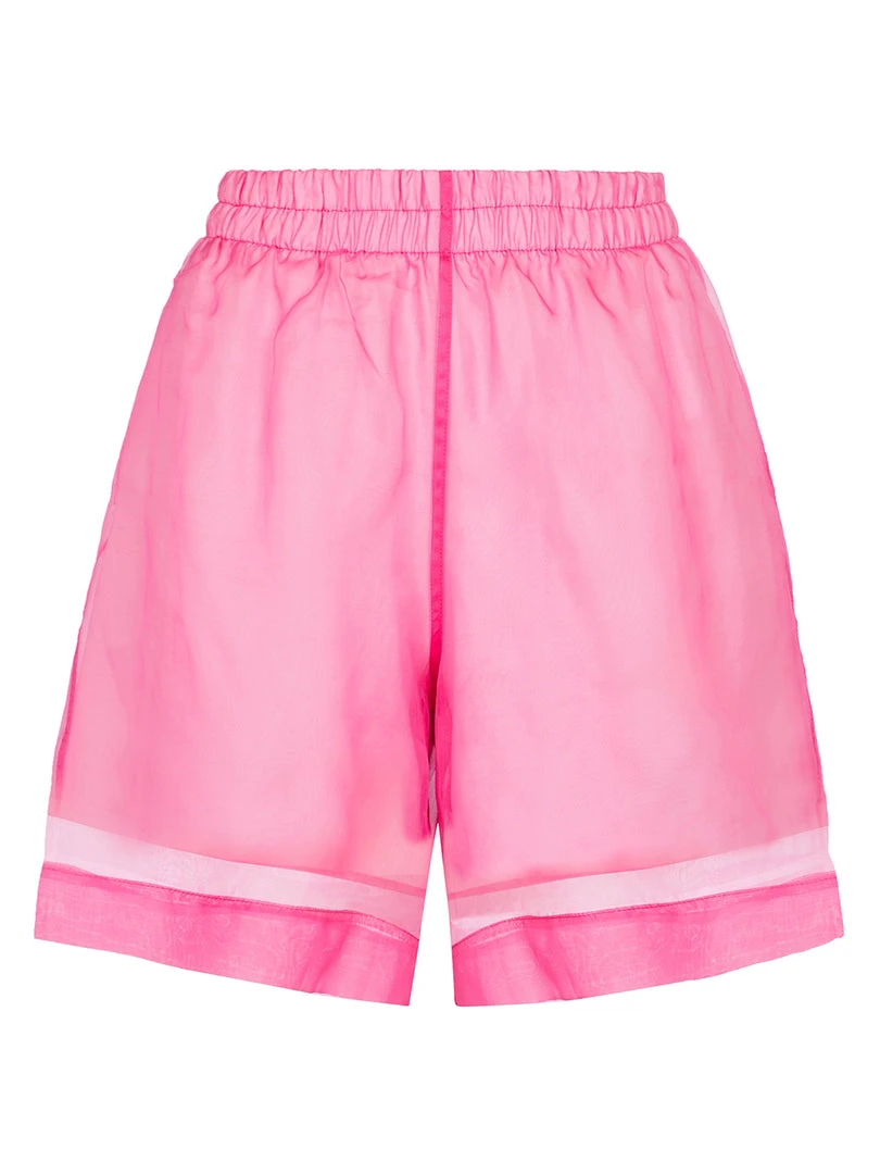 Dries Van Noten pink ‘Hanar’ sheer shorts featuring an elasticated waistband, side slit pockets, cotton under shorts with a sheer outer fabric and pulls on. Item fits true to size. Model is wearing a size XS.