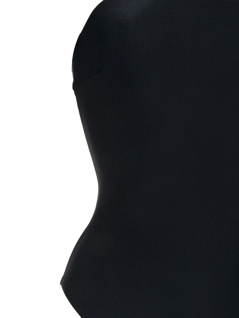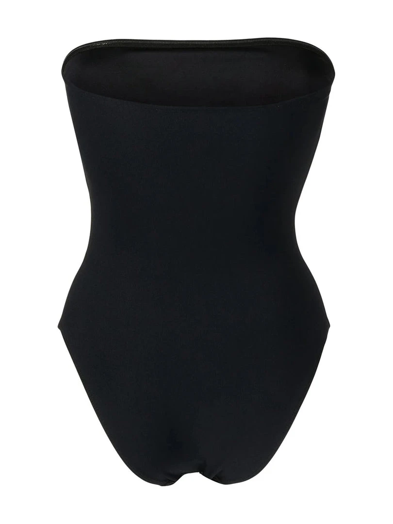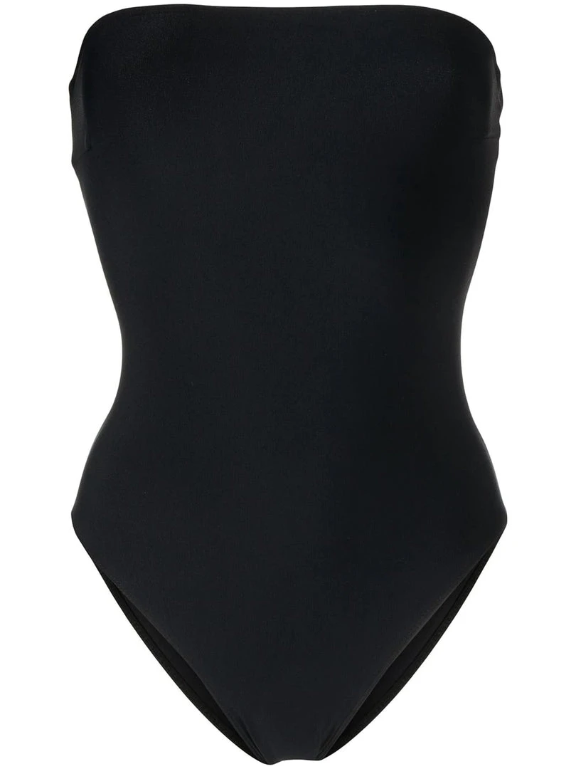 Faithfull The Brand black ‘Josca’ swimsuit featuring a strapless neckline, a high rise leg and pulls on. Item fits true to size. Model is wearing a size S.Â
