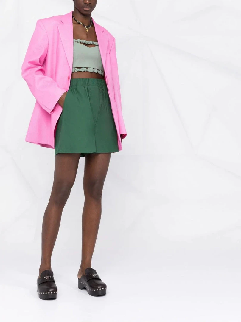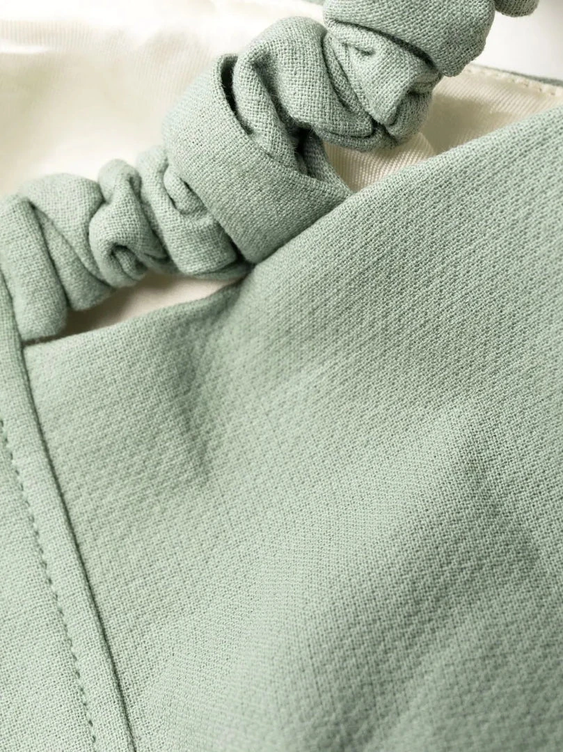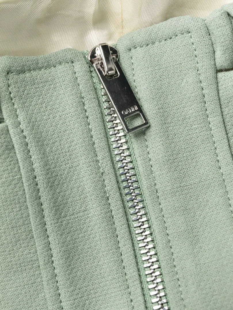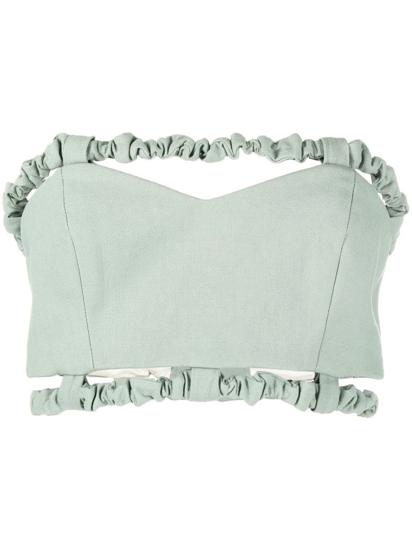 Ganni green ‘Bandeau Strapless Crop Top’ featuring elasticated, gathered bands on the top and hem, a back zip fastening and cut out details. Item fits true to size. Model is wearing a size 36 FR.