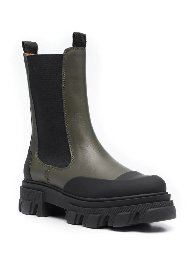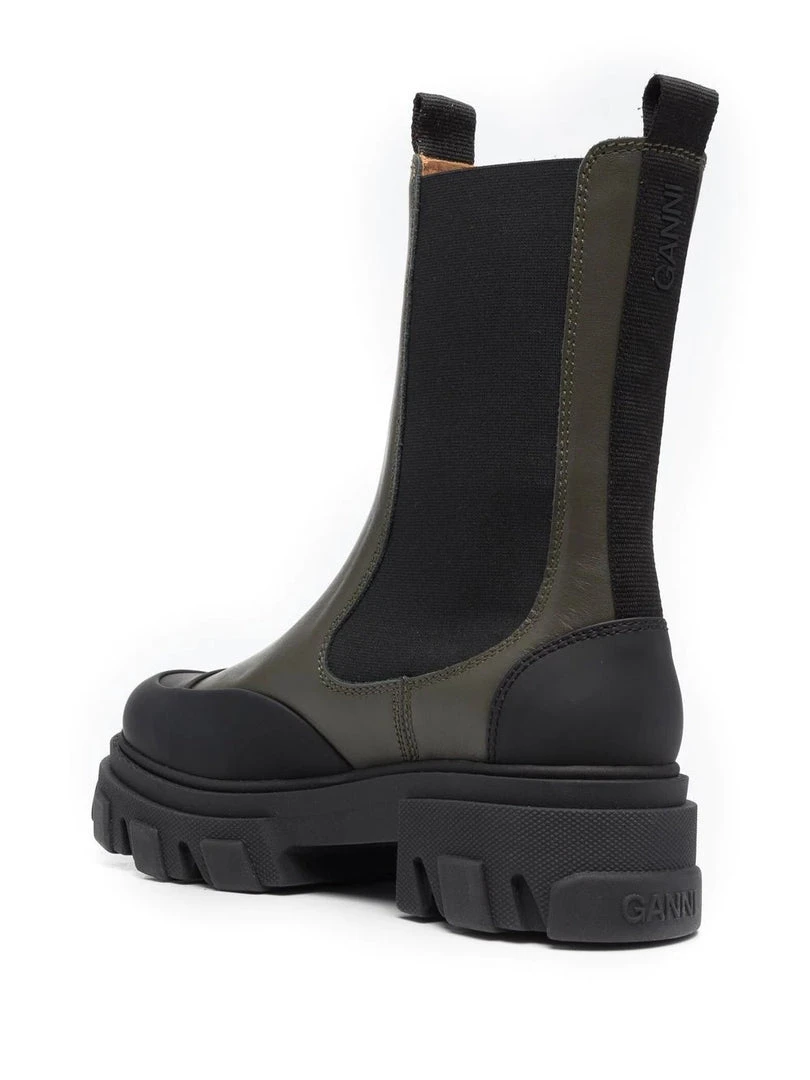 Ganni ‘Khaki And Black Calf High Chelsea Boots’ New In