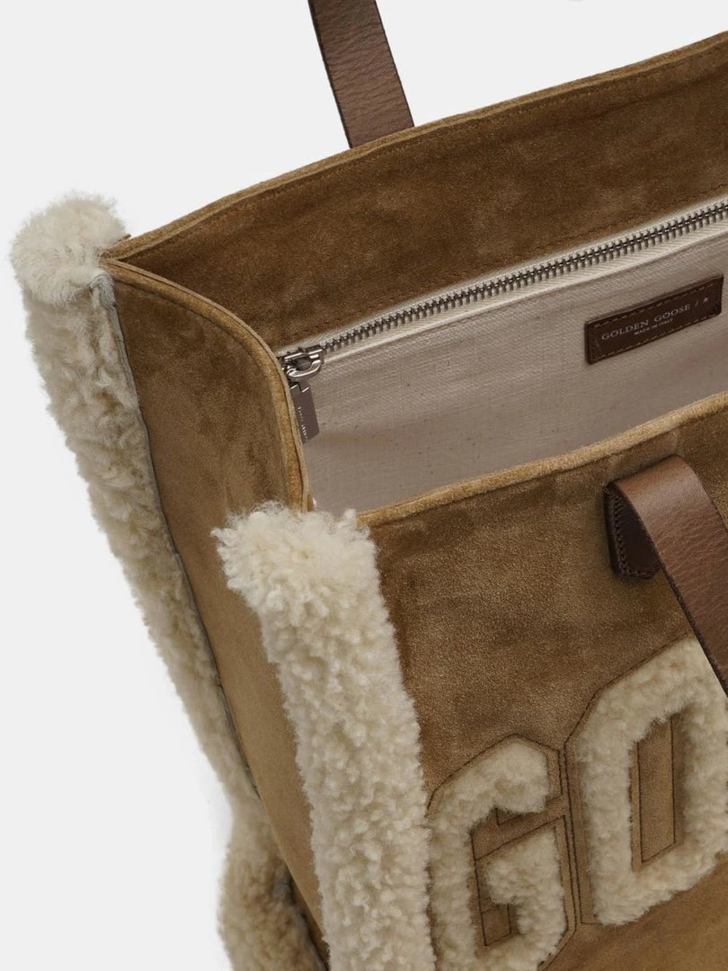Golden Goose Bags ‘California’ Shearling Logo Tote Bag