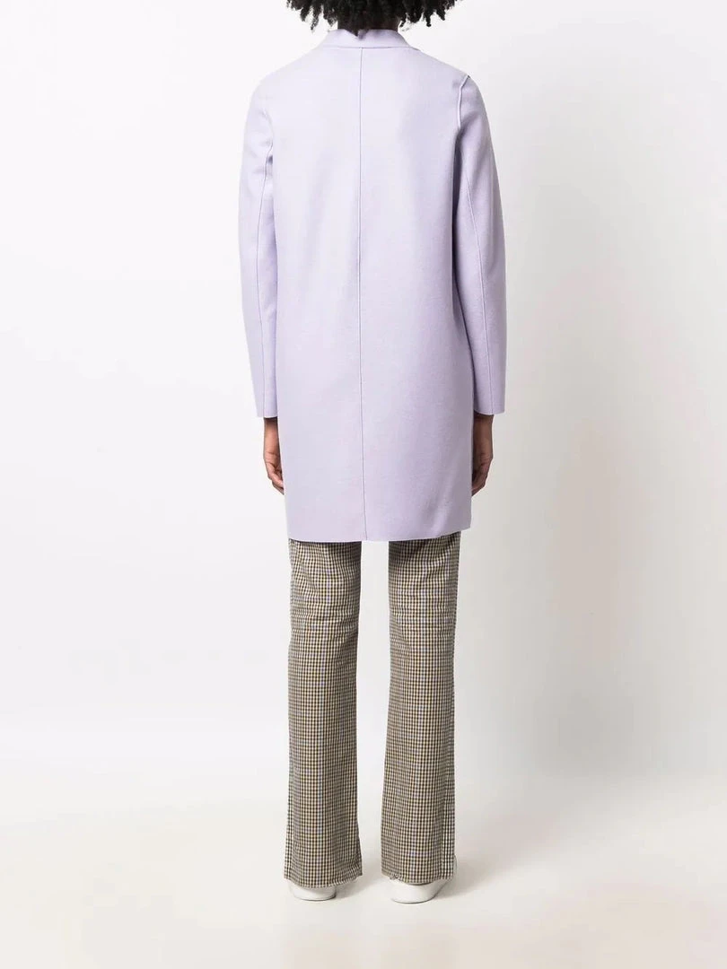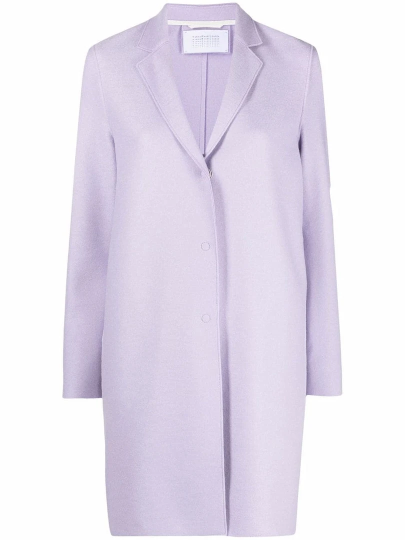 Harris Wharf London ‘Lilac Single Breasted Midi Coat’ featuring lapels, front button fastenings, long sleeves, side slip pockets and a visible centre seam at the back. Item fits true to size. Model is wearing a size 40 IT.