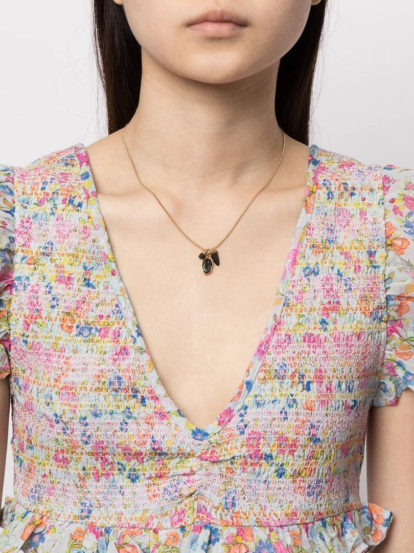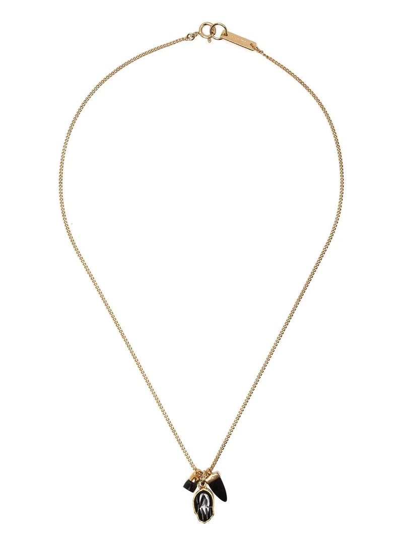 Isabel Marant ‘Charm Detail Necklace’ featuring a spring ring fastening, three black charm pendants and gold tone hardware. Made in Poland.