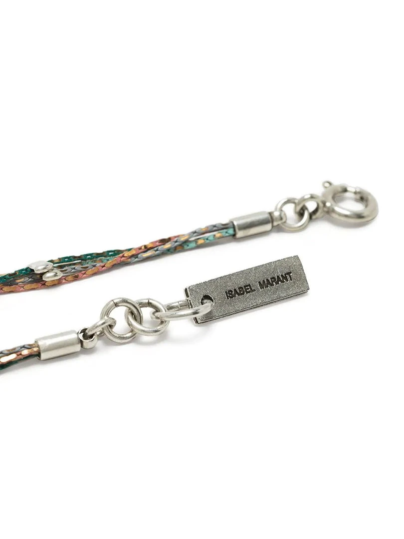 Isabel Marant celadon ‘Multi String Bracelet’ featuring a spring ring fastening, a multi chain design and stud details. Made in Poland.