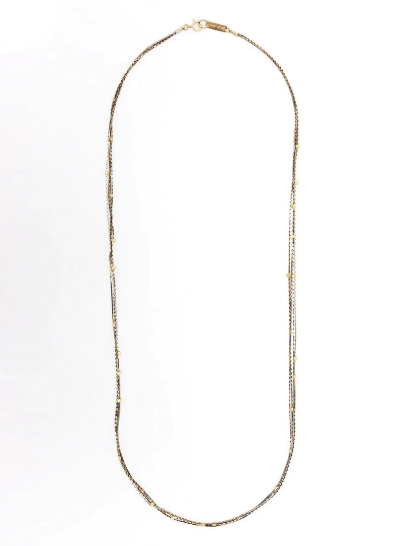 Isabel Marant navy ‘Multi String Long Necklace’ featuring a spring ring fastening, a multi chain design, gold stud details and a long length. Made in Poland.