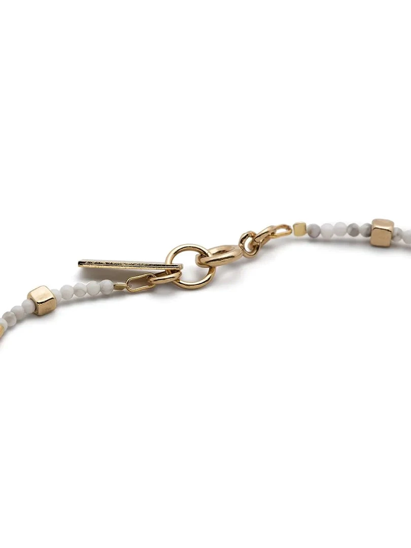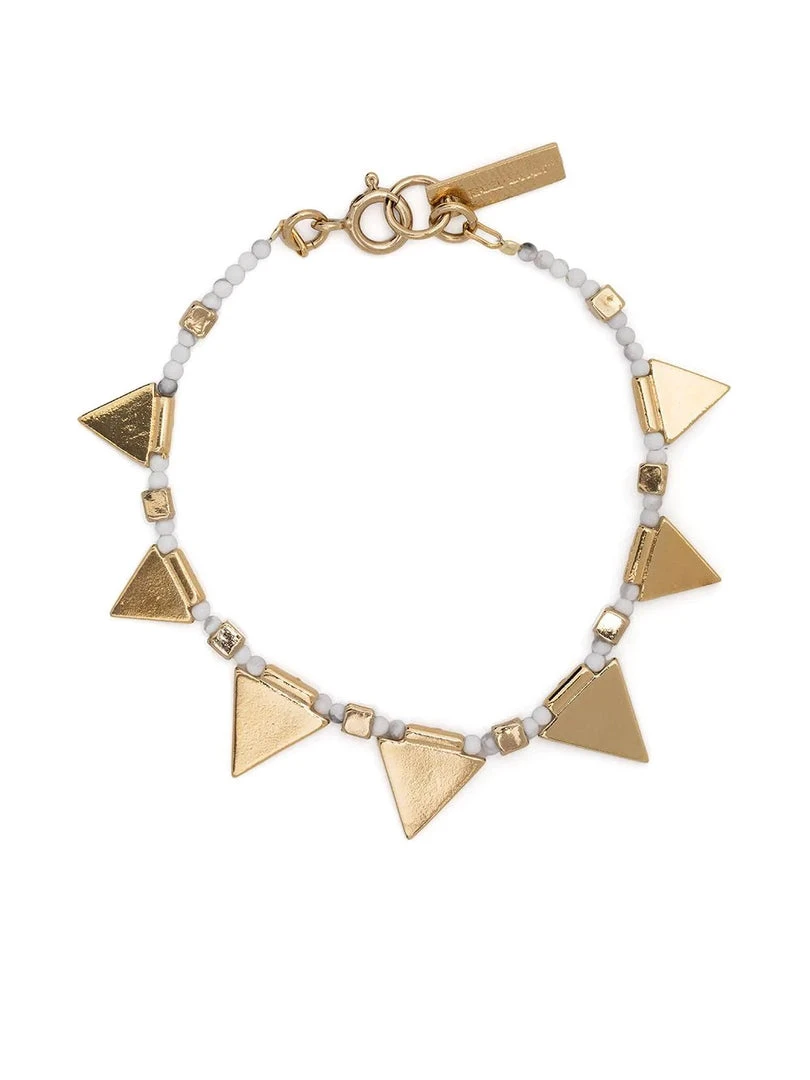 Isabel Marant ‘Rocio’ bracelet featuring a spring ring fastening, a white beaded design with triangular details and gold tone hardware. Made in Poland.