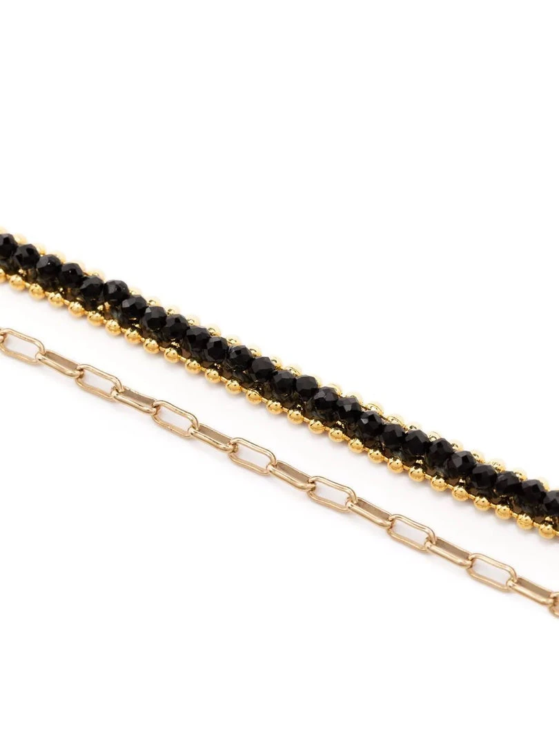 Isabel Marant ‘Cesaria Scarf Necklace’ featuring a spring ring fastening, a short black beaded necklace, long side chains with black bead details and gold tone hardware. Item is One Size. Made in Poland.Â