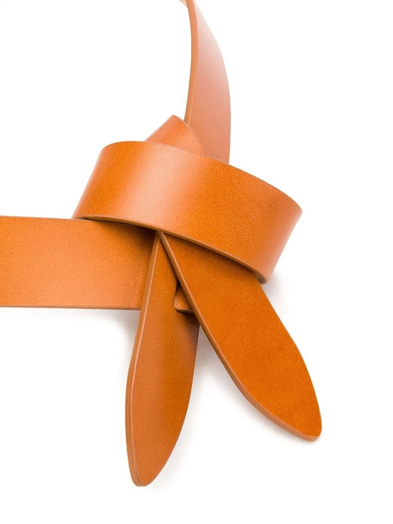 Isabel Marant cognac toned ‘Lecce’ belt featuring an imprinted logo detail on the inside, a knotted style and a 3cm width. Made in France.