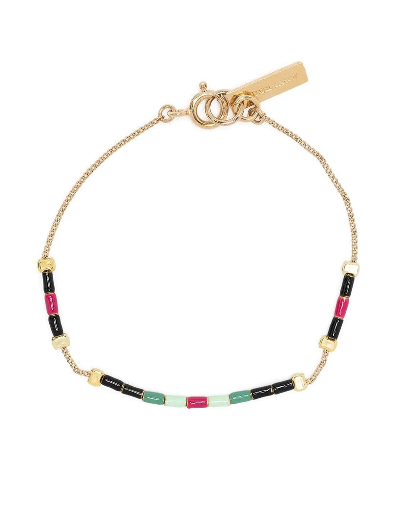 Isabel Marant ‘Colour Stripe Bracelet’ featuring a spring ring fastening, multicoloured long bead details and gold tone hardware. Item is One Size. Made in Poland.Â