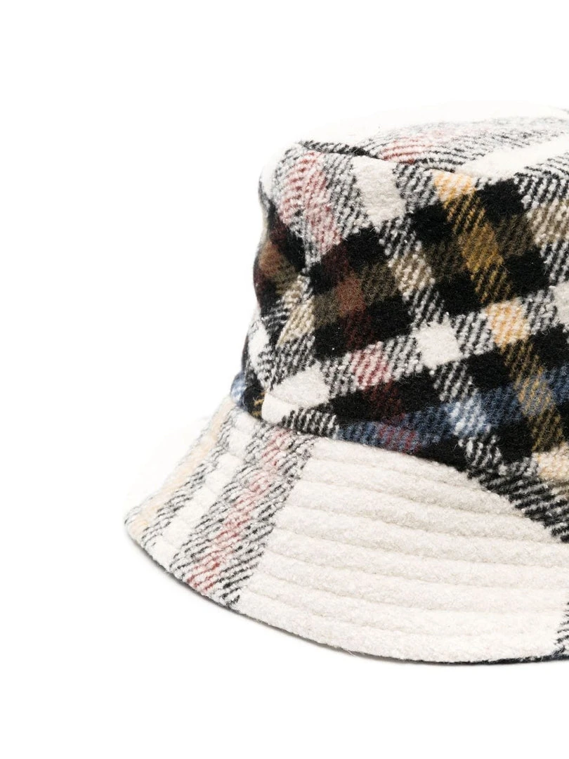 Isabel Marant ecru ‘Haley’ bucket hat featuring a front logo design, a checked print and a pull on style. Item Size is in CM.