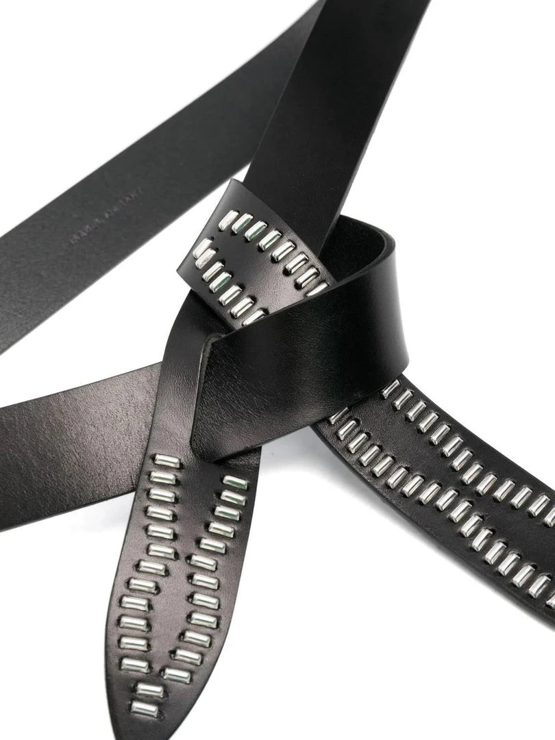 Isabel Marant black ‘Lecce 5A’ leather belt featuring silver-tone hardware detailing and a knotted design. Made in Italy.