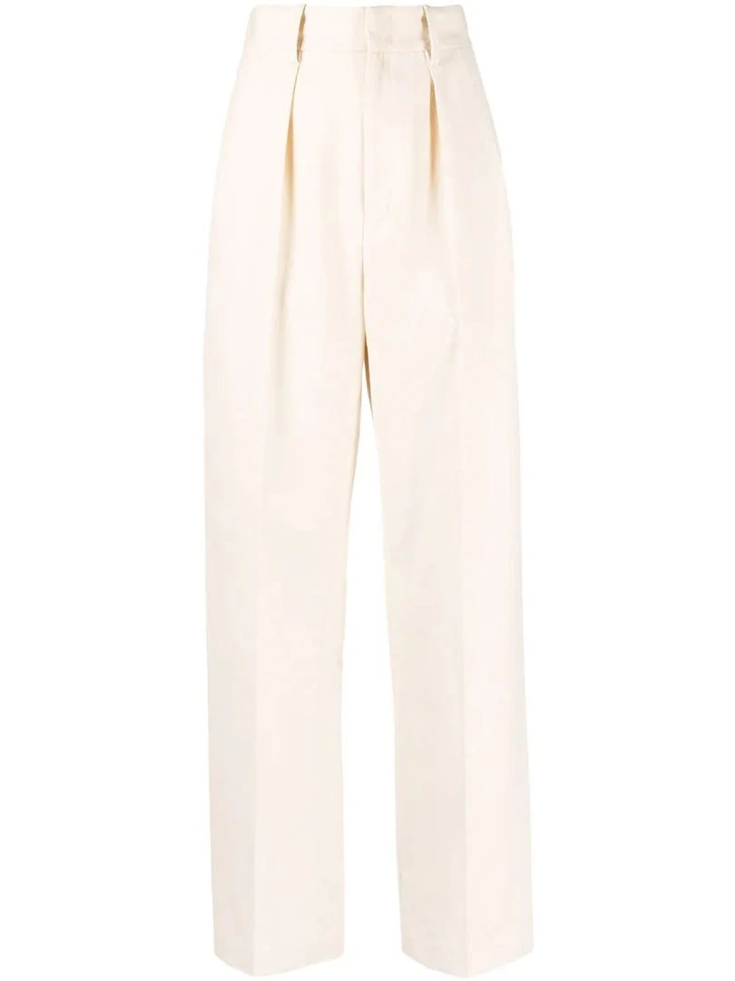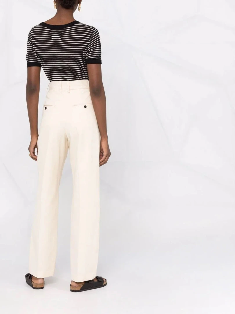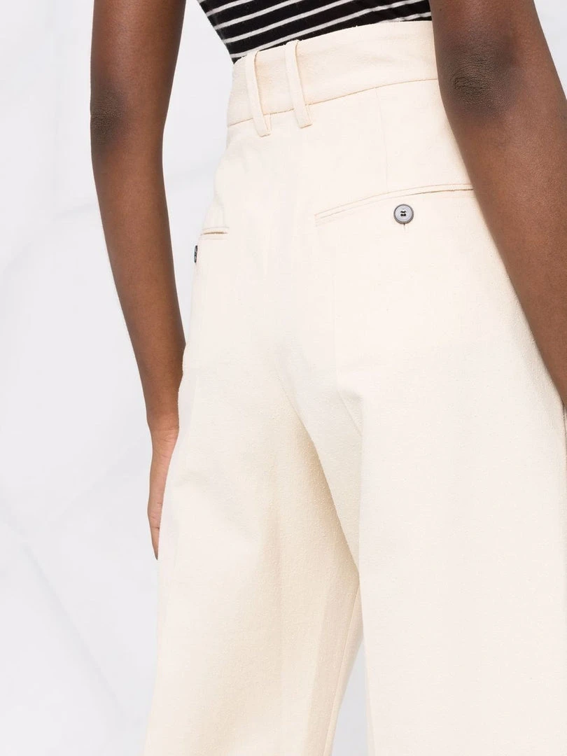 Isabel Marant Etoile cream ‘Miro’ textured trousers featuring a front zip and hook fastening, belt loops, a four pocket design, a straight leg fit, textured fabric and a high rise style. Item fits true to size. Model is wearing a size 36 FR.