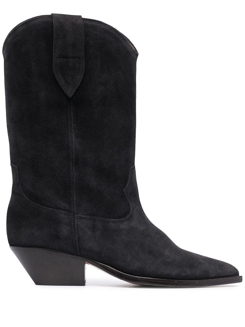 Isabel Marant faded black ‘Duerto’ boots featuring a pointed toe, a low block heel, a branded insole and a pull on style. Item fits true to size. European Sizing. Made in Portugal.