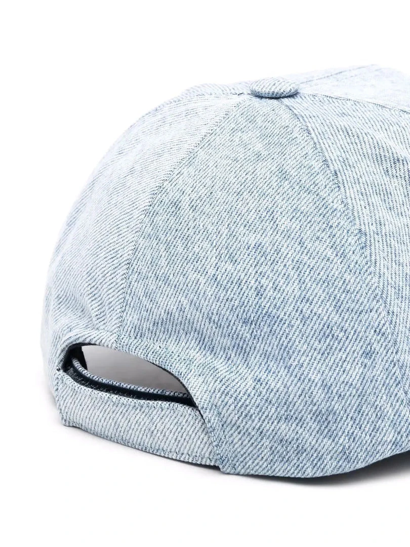 Isabel Marant light blue ‘Tyron’ denim cap featuring a round peak, a logo design on the front and an adjustable velcro fastening at the back. Made in Bulgaria. Item is One Size.Â