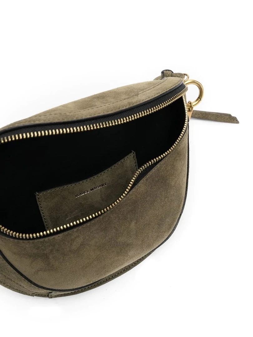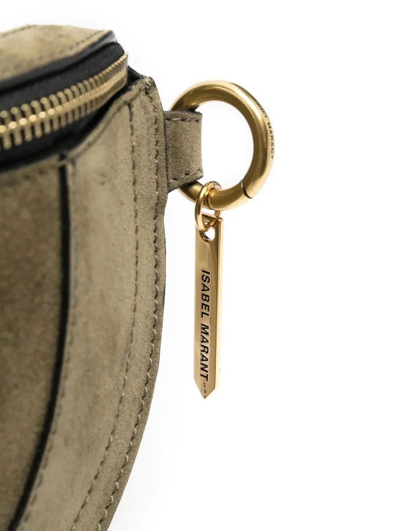 Isabel Marant khaki ‘Skano’ belt bag featuring a zip closure, a back slip pocket, an internal card slot, gold-tone hardware and a detachable and adjustable strap. One Size.Â