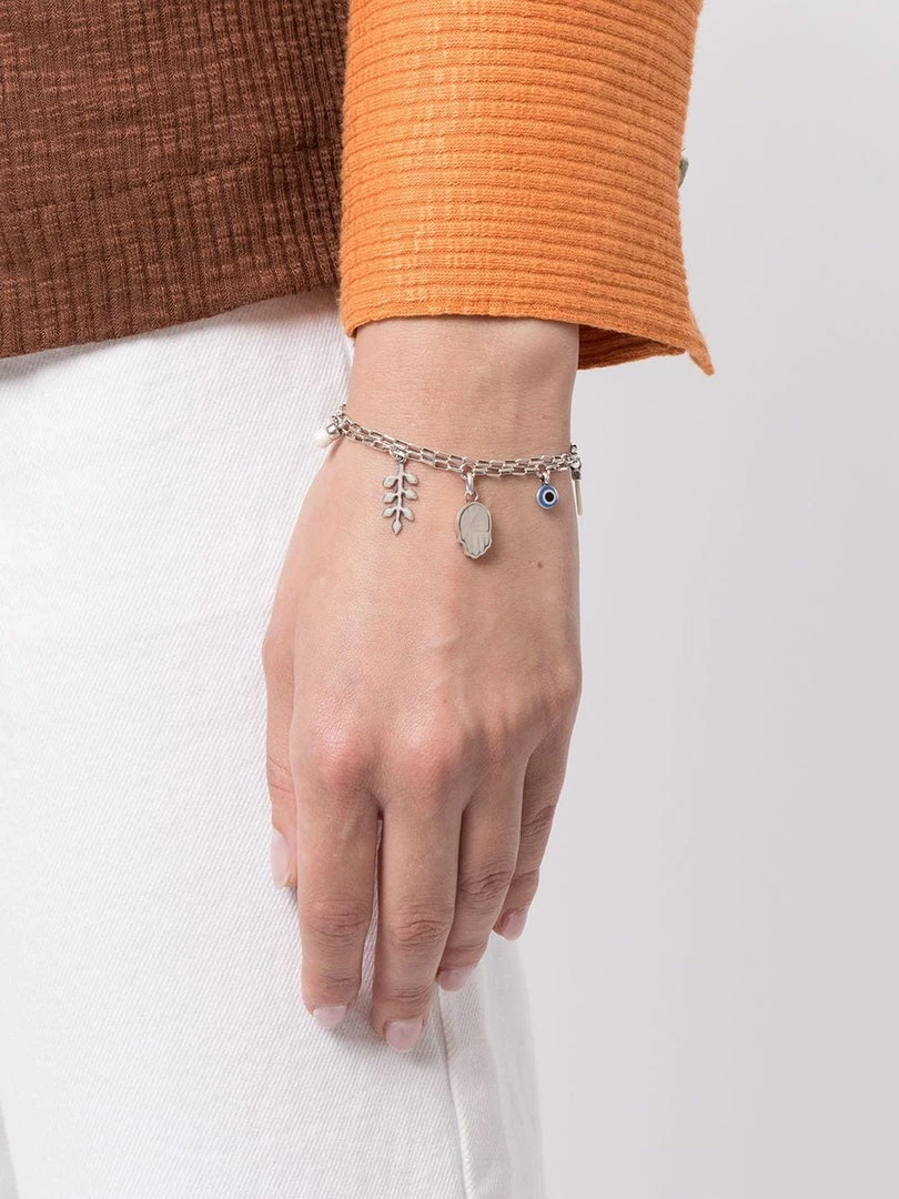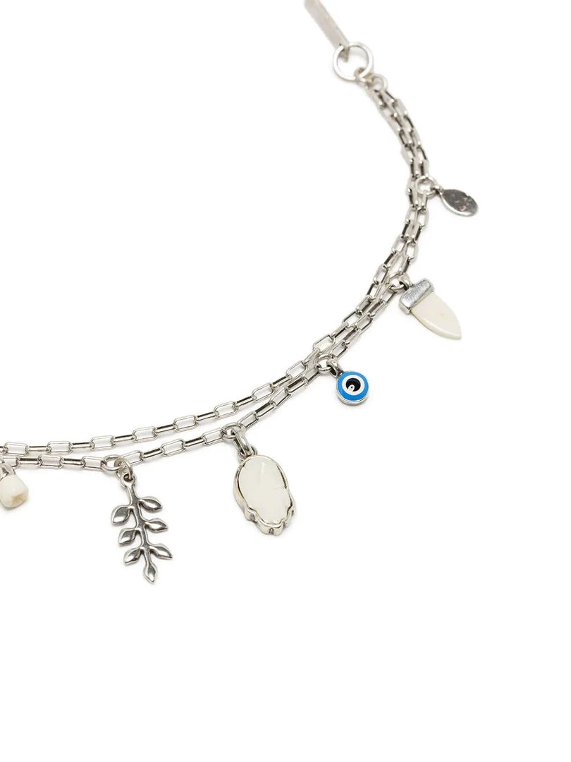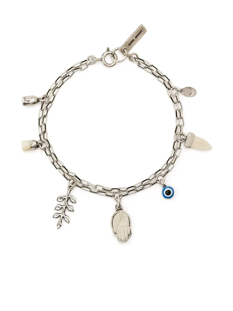 Isabel Marant ‘New It’s All’ bracelet featuring a spring ring fastening, a silver multi chain design and white charm pendants. Made in Poland.