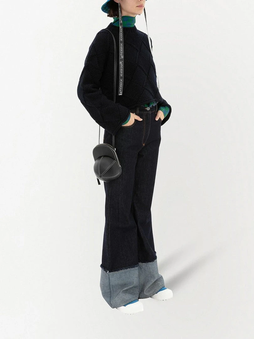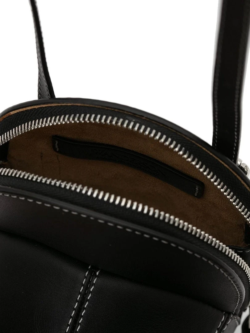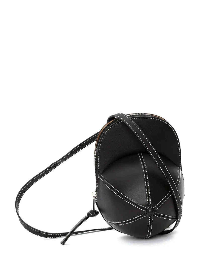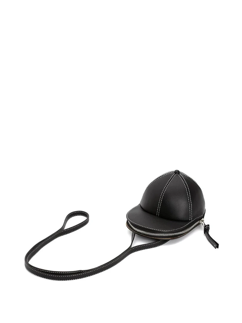 JW Anderson ‘Nano Cap Bag’ featuring a long adjustable shoulder strap, a zip fastening, contrasting white stitching and silver tone hardware. Made in Hungary.
