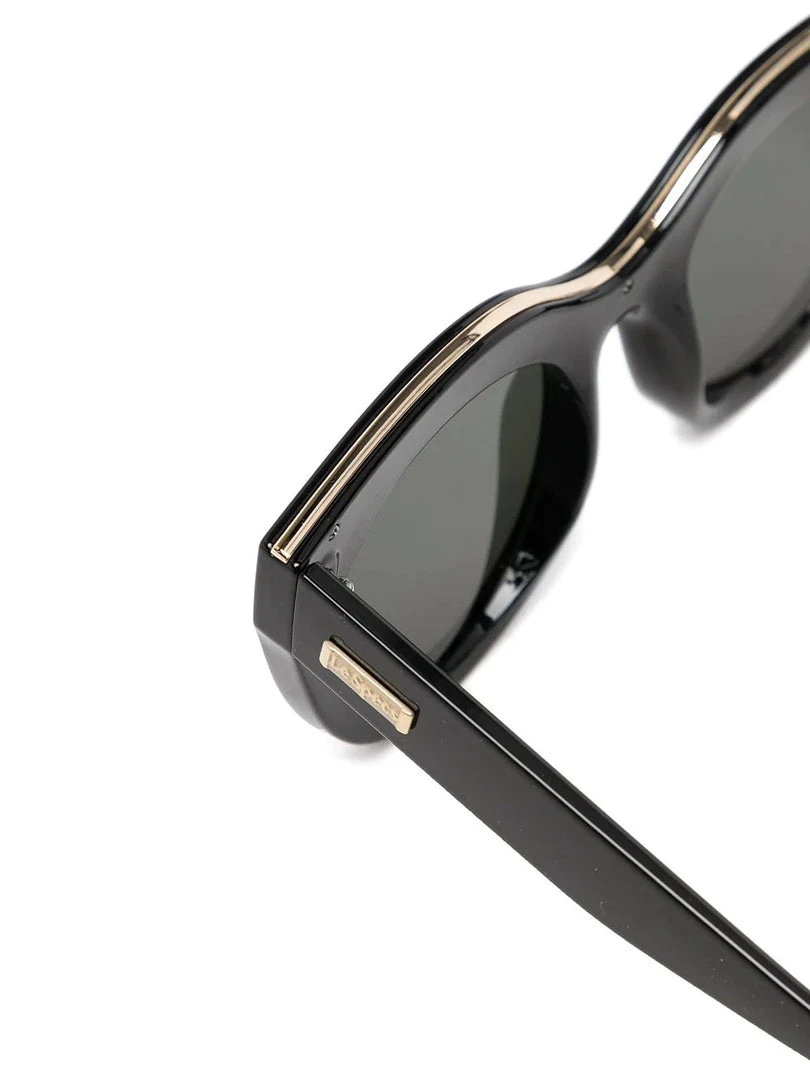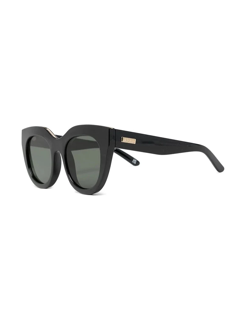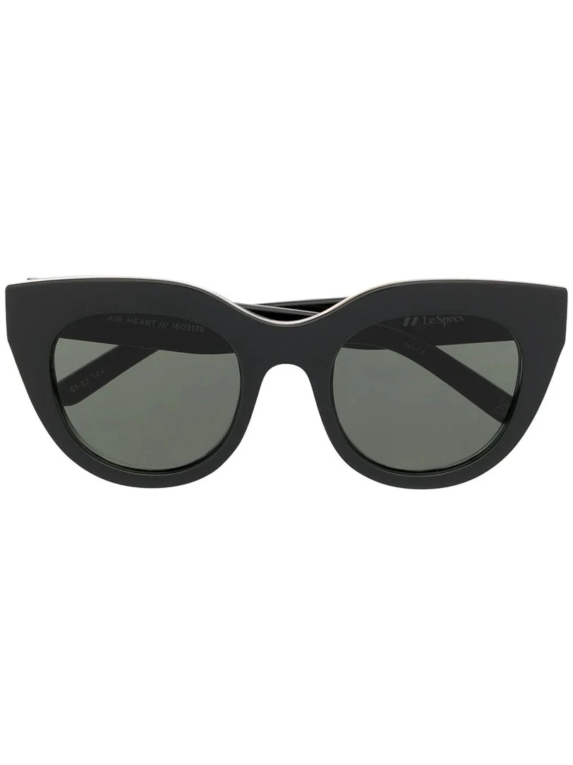 Le Specs ‘Air Heart’ black and gold sunglasses featuring a thick cat eye frame with a gold top, straight arms and curved tips. These glasses come with a protective case. One Size. Made in China.Â