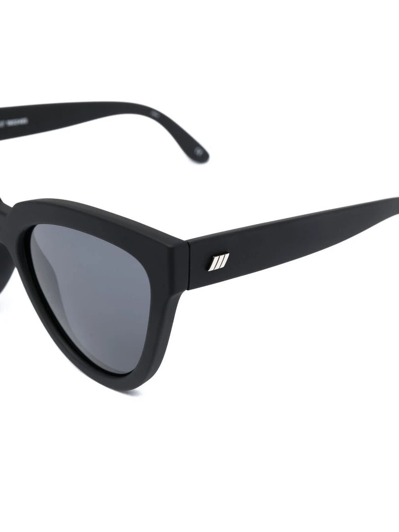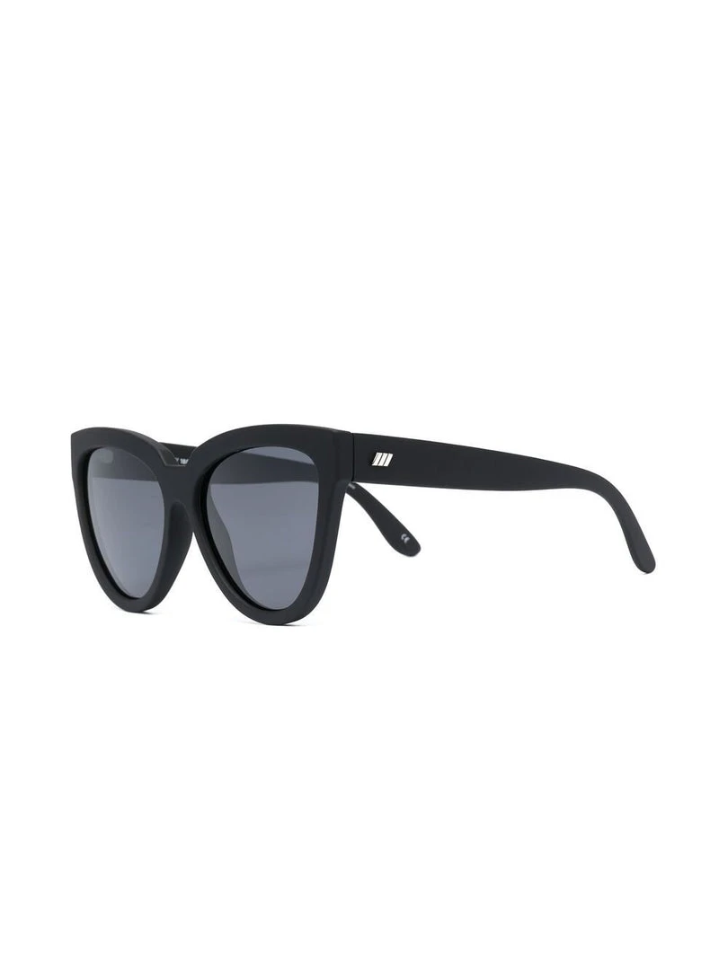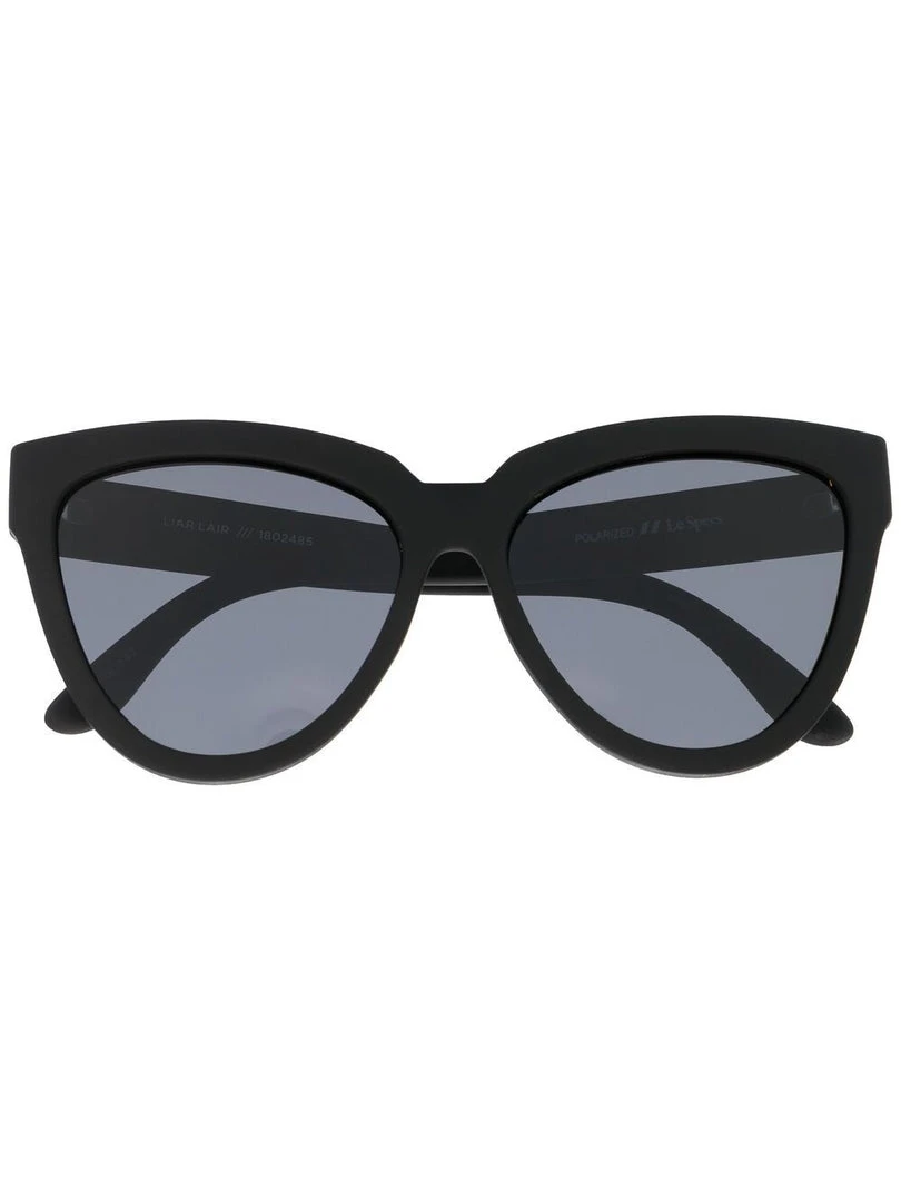 Le Specs black ‘Liar Lair’ sunglasses featuring a rubberised frame, polarized lenses and a cat-eye style. These glasses come with a protective case. Made in China.