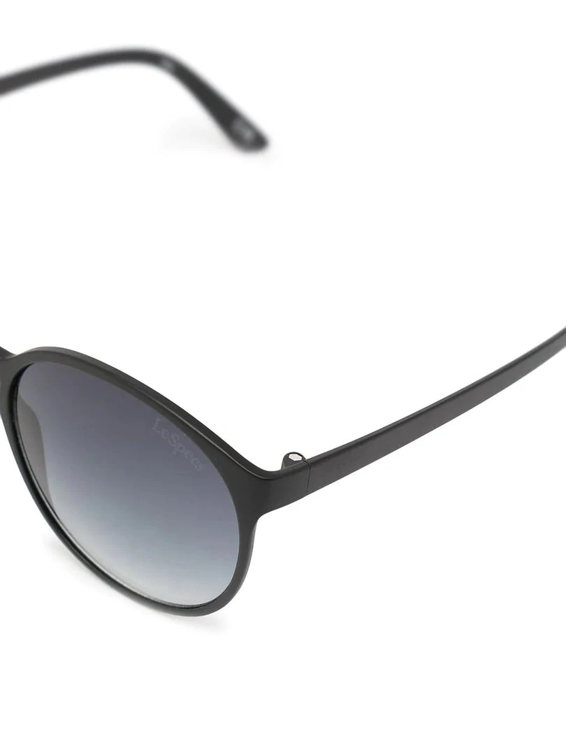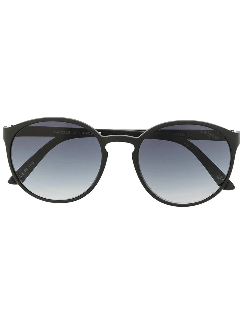 Le Specs ‘Swizzle’ black sunglasses featuring a round frame, tinted lenses, straight arms, curved tips and a matte effect. These glasses come with a protective case. Made in China.