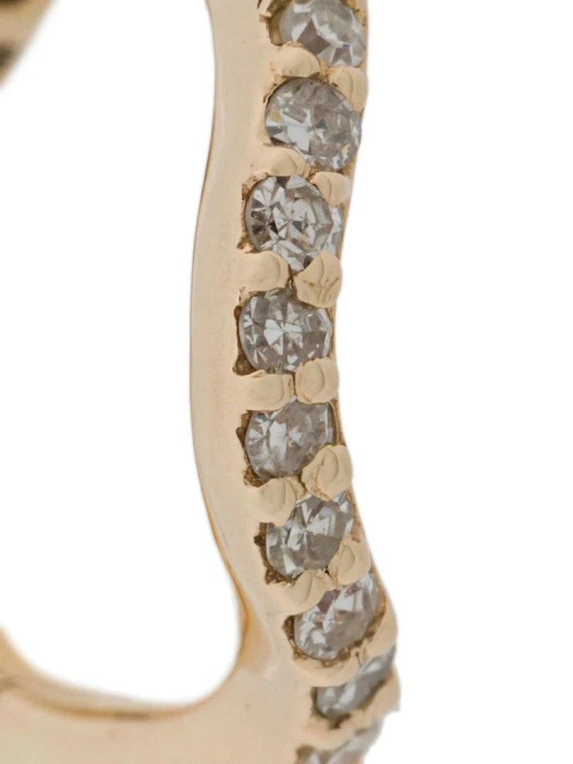 Maria Black ‘Diamond Wave Huggie’ earring featuring 12 diamonds and 1 pink sapphire, a slide clip fastening and a small slanted hoop design. Sold as a single earring.Â