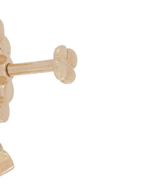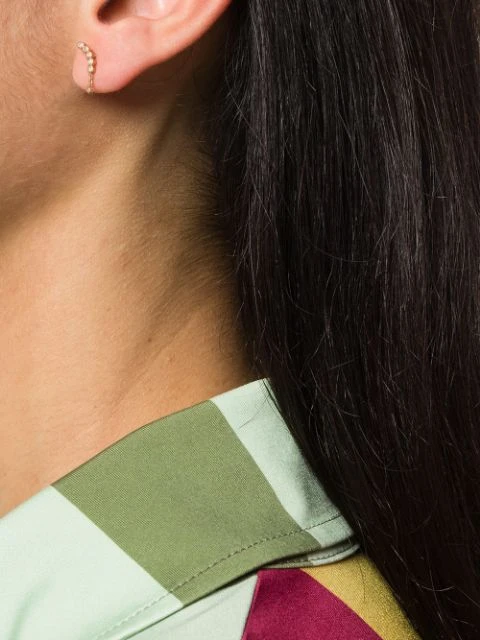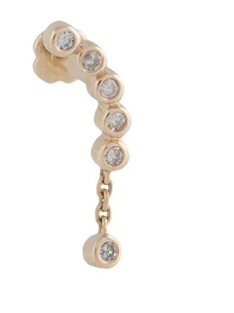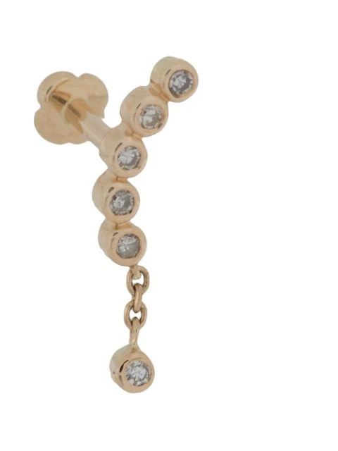 Maria Black 14K yellow gold ‘Diamond Quadron Labret’ left earring featuring five diamonds in a unique crescent shape and a dangly detail. Sold as a single earring. Made in India.