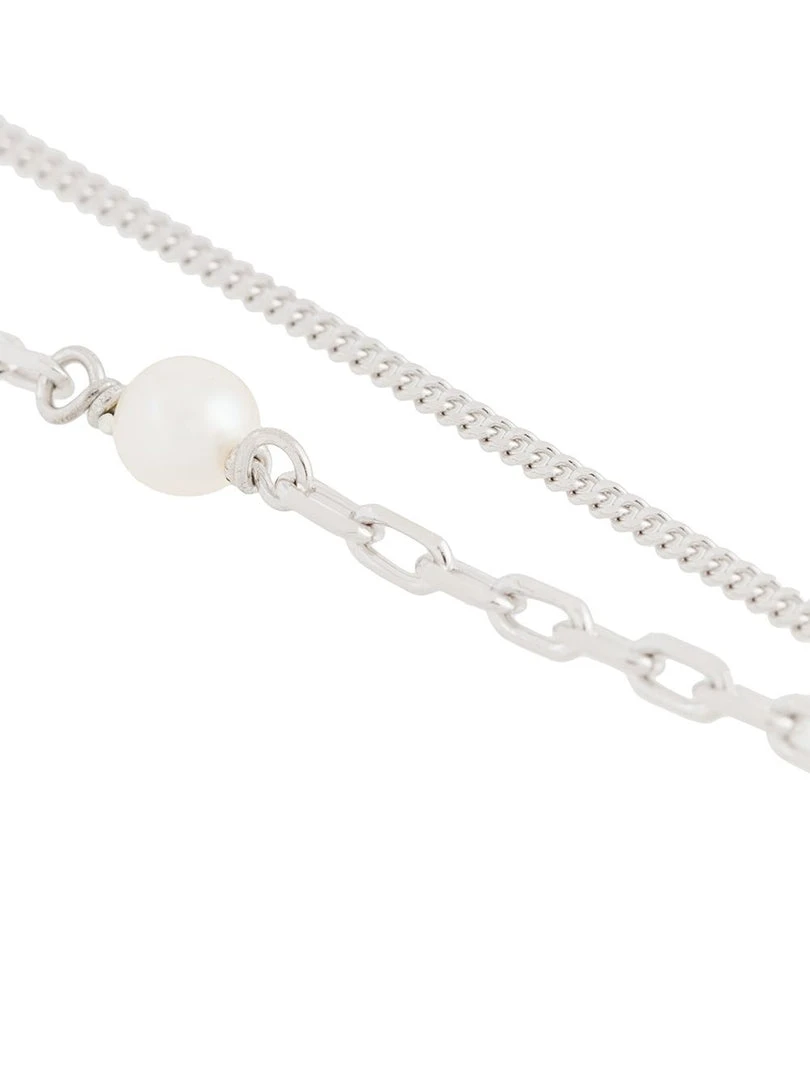 Maria Black silver ‘Cantare’ necklace featuring a multi chain design, a pearl detail, an adjustable ball and chain feature and a clasp fastening. Length is 35-50cm.