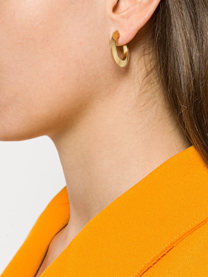 Maria Black yellow gold plated ‘Else’ hoop featuring a butterfly fastening. Sold as an individual earring.