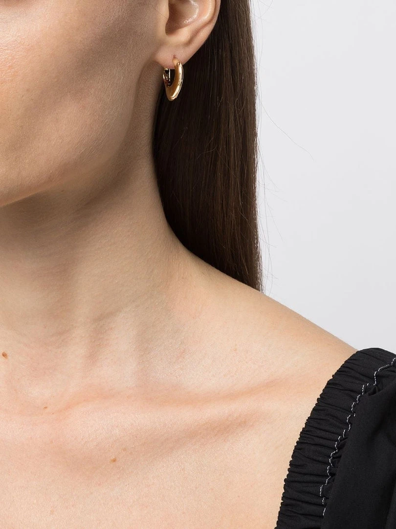 Maria Black sterling silver gold plated ‘Fei Huggie’ earring featuring a hoop design with an abstract detail, a black ‘I Love You’ slogan on the inside, a high polish finish and a clip fastening. Sold as a single earring.Â